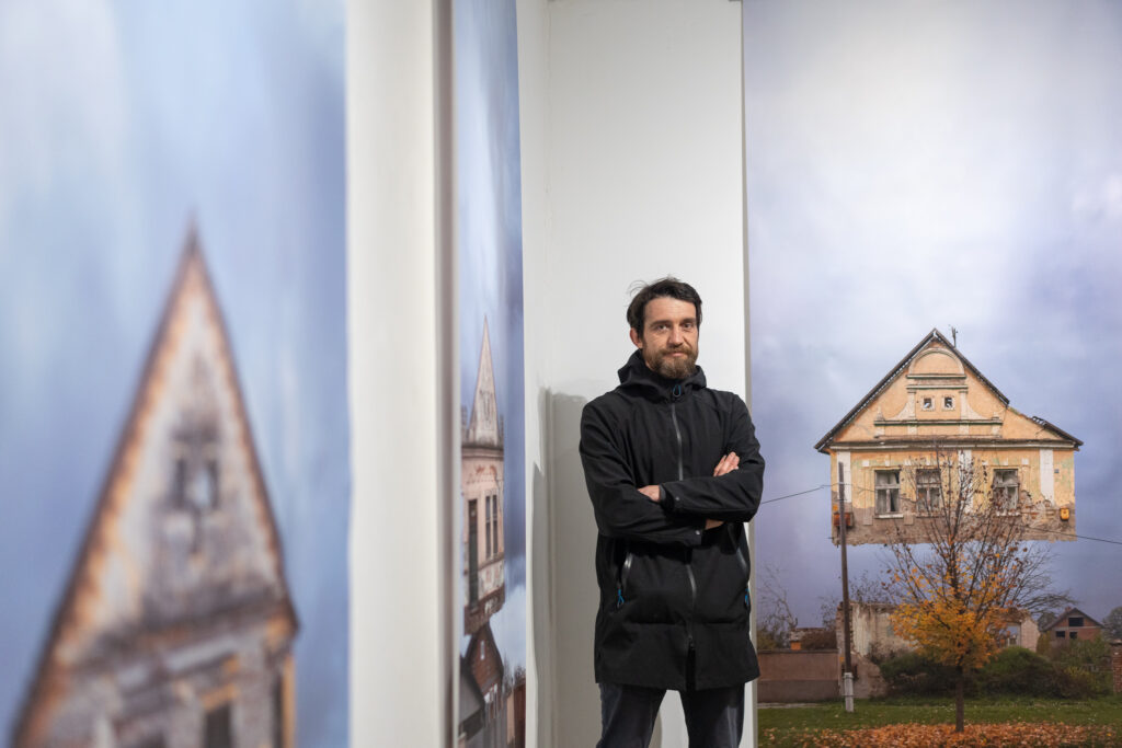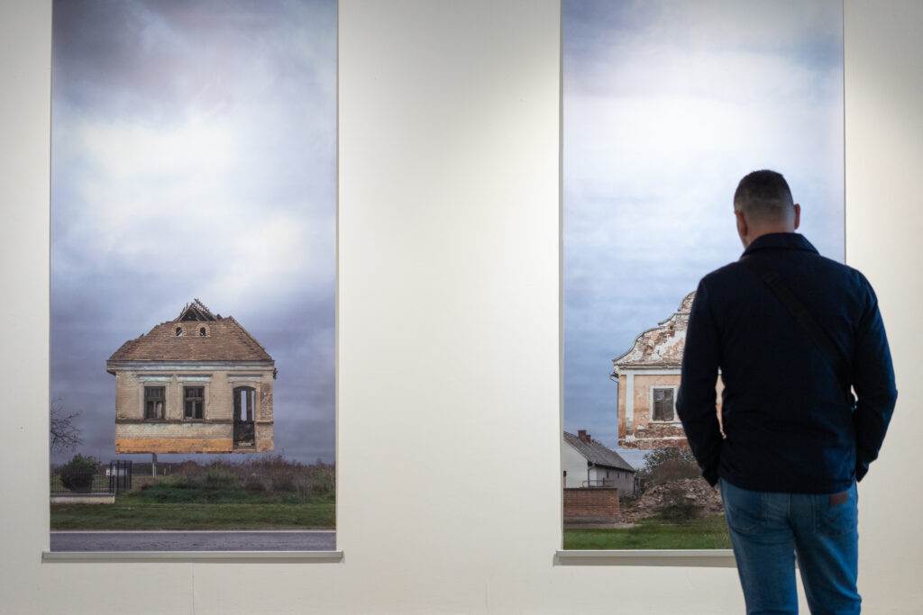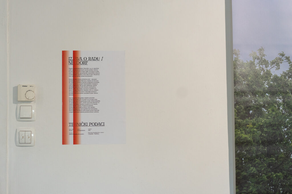 U ciklusu „Neudorf“ (2025.) autor nastavlja dugoročno istraživanje slavonskih sela započeto serijom „Dorf“ (2022.), oblikujući slojevite vizualne narative na granici dokumentarnog i konstruiranog. Polazeći od konkretne topografije Slavonije, bilježi, katalogizira i kolažira vernakularnu arhitekturu, stvarajući prizore koji istodobno svjedoče i interpretiraju prostor.