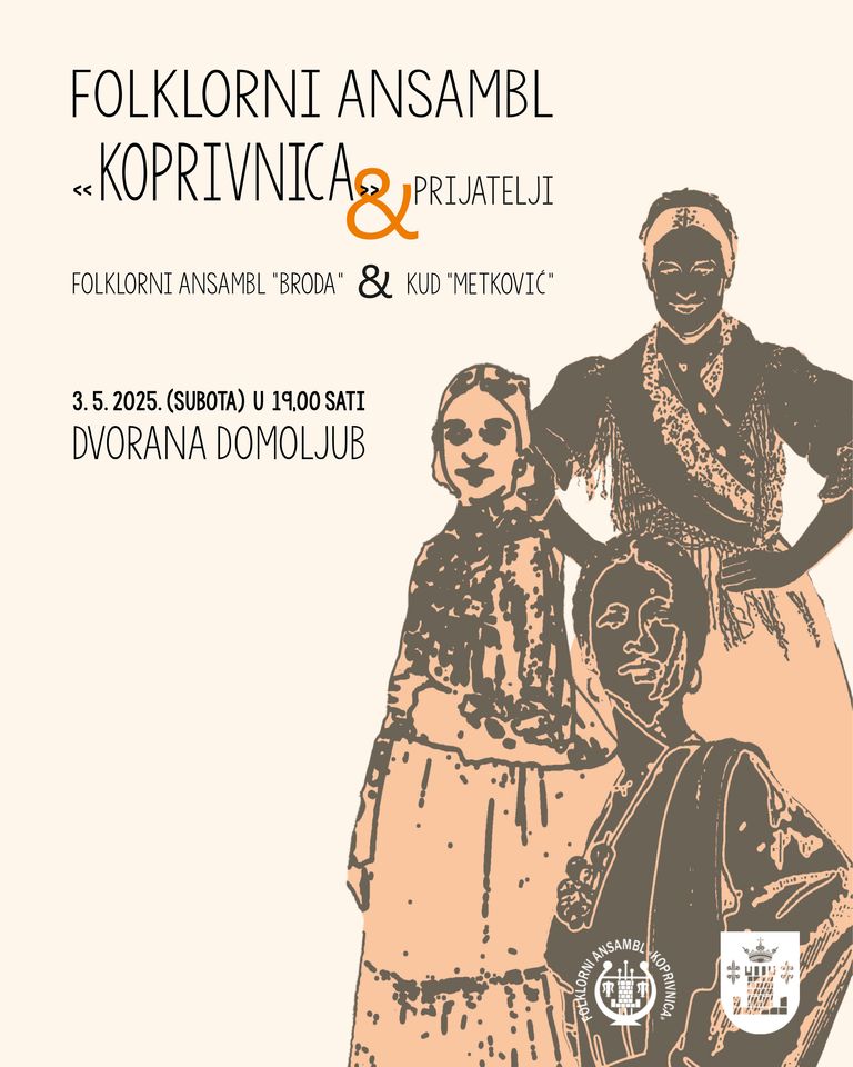 Folklorni ansambl „Koprivnica“ već više desetljeća s ljubavlju i predanošću njeguje i čuva bogatu folklornu baštinu Hrvatske. Tijekom godina djelovanja, Ansambl je ostvario brojna prijateljstva i suradnje s folklornim društvima diljem zemlje, a upravo se iz tih vrijednih susreta i zajedničkih nastojanja rodila ideja o organizaciji zajedničkog koncerta triju društava: Folklornog ansambla Broda, KUD-a Metković i Folklornog ansambla „Koprivnica“.